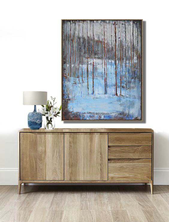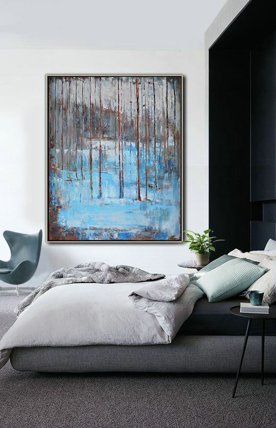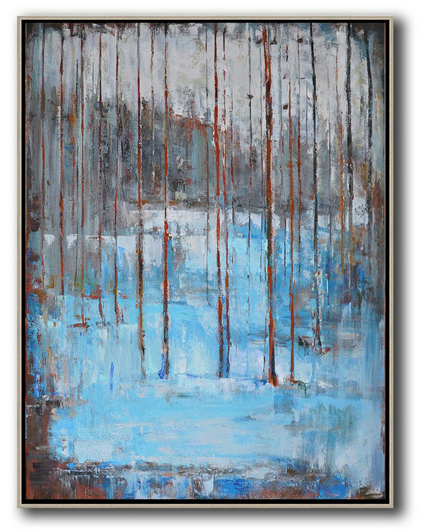 Hand Made Abstract Art,Abstract Landscape Painting,Handmade Acrylic Painting,White,Grey,Red,Blue