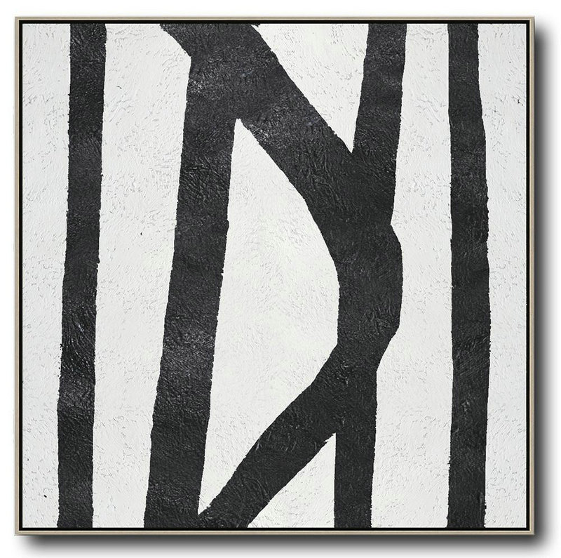 Hand Painted Extra Large Abstract Painting,Oversized Minimal Black And White Painting – Modern Paintings