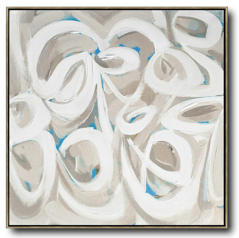 Hand Painted Extra Large Abstract Painting,Oversized Palette Knife Painting Contemporary Art On Canvas,Size Extra Large Abstract Art,White,Grey,Sky Blue.etc