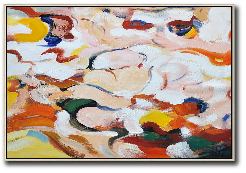 Handmade Extra Large Contemporary Painting,Oversized Horizontal Contemporary Art,Hand Painted Original Art,White,Pink,Yellow,Red,Blue.etc