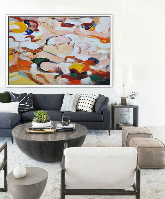 1 review for Handmade Extra Large Contemporary Painting,Oversized Horizontal Contemporary Art,Hand Painted Original Art,White,Pink,Yellow,Red,Blue.etc