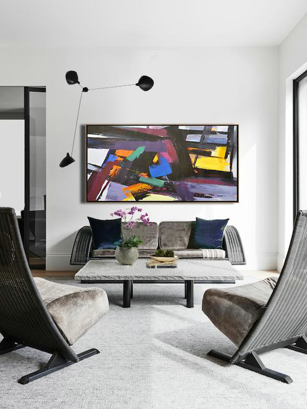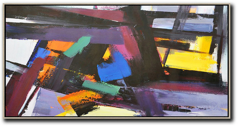 2 reviews for Handmade Large Contemporary Art,Horizontal Palette Knife Contemporary Art Panoramic Canvas Painting,Large Canvas Art,Purple,Black,Yellow,Blue.etc
