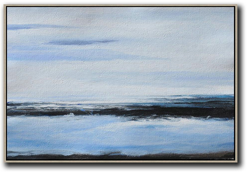 Handmade Large Contemporary Art,Horizontal Palette Knife Contemporary Art,Artwork For Sale,Sky Blue,White,Black.etc