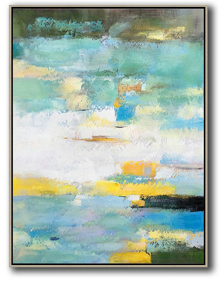 Acrylic Painting On Canvas,Vertical Palette Knife Contemporary Art,art work,green,white,yellow,blue,Large canvas wall art may seem out of your budget choose style for your space below and if you need any other size, feel free to contact us for a custom quote!