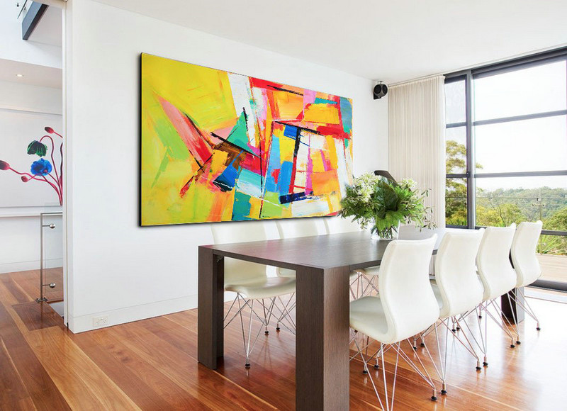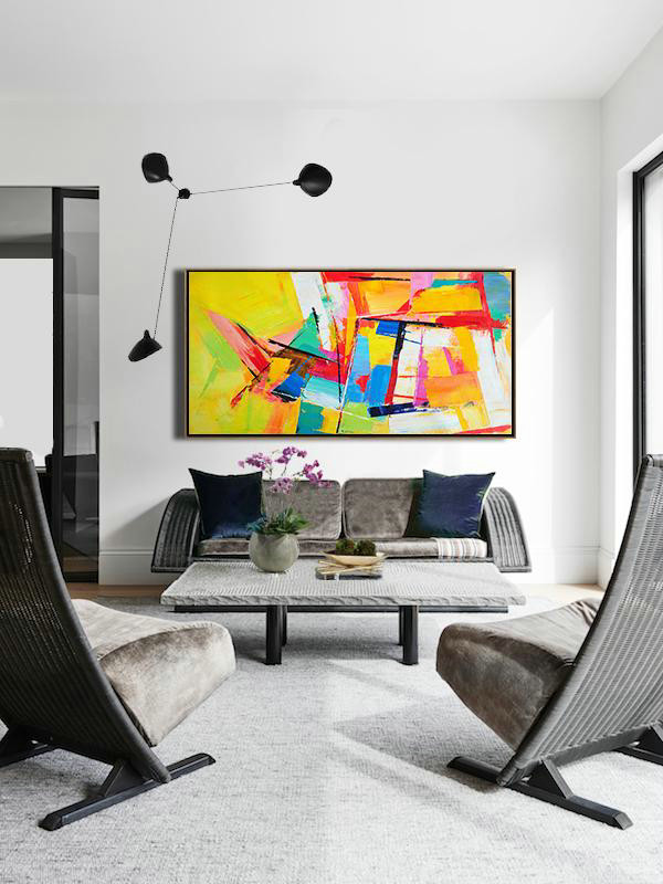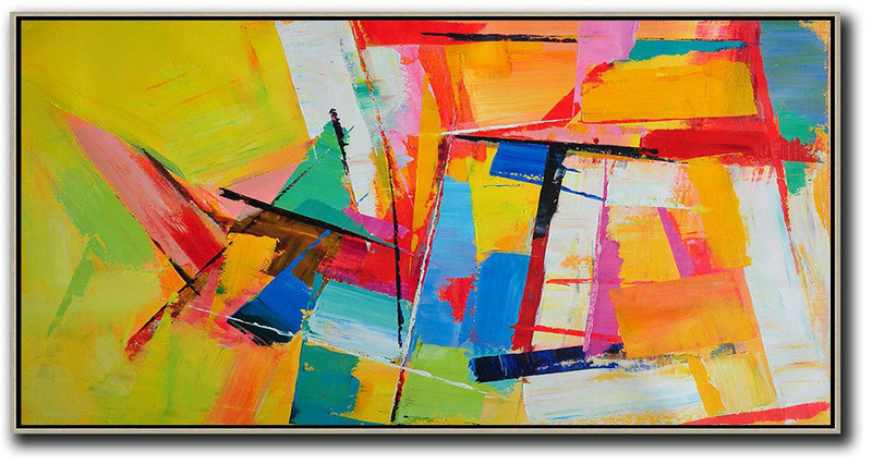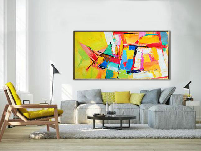 Huge Abstract Painting On Canvas,Horizontal Palette Knife Contemporary Art Panoramic Canvas Painting,Large Wall Art Home Decor,Yellow,Red,White,Blue.etc