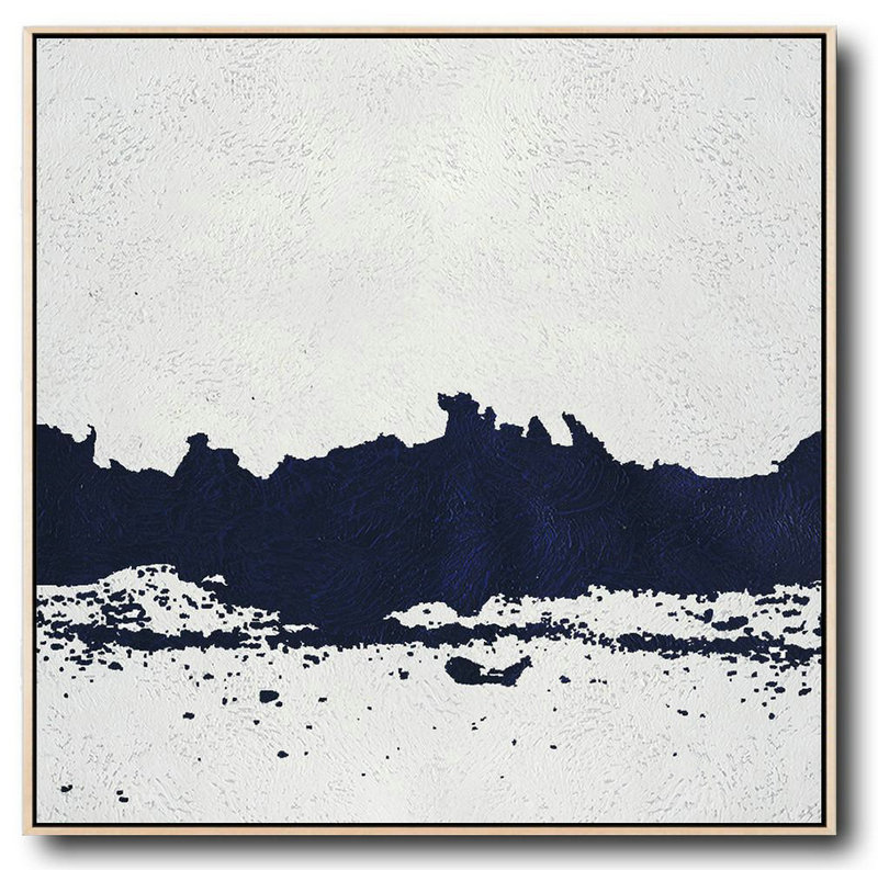Large Abstract Art Handmade Oil Painting,Hand Painted Navy Minimalist Painting On Canvas,Modern Art Abstract Painting