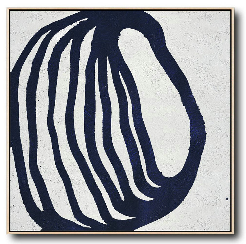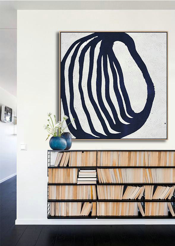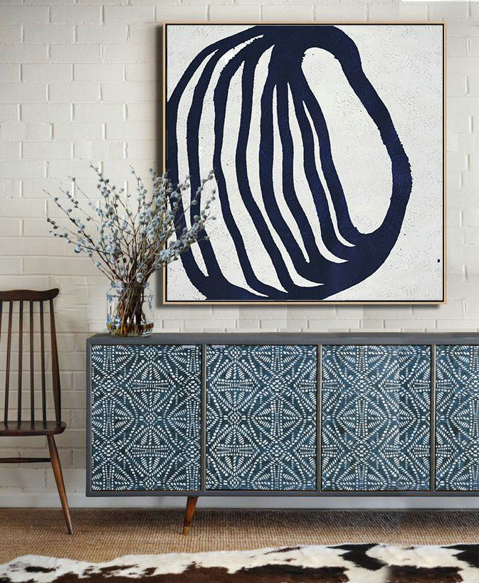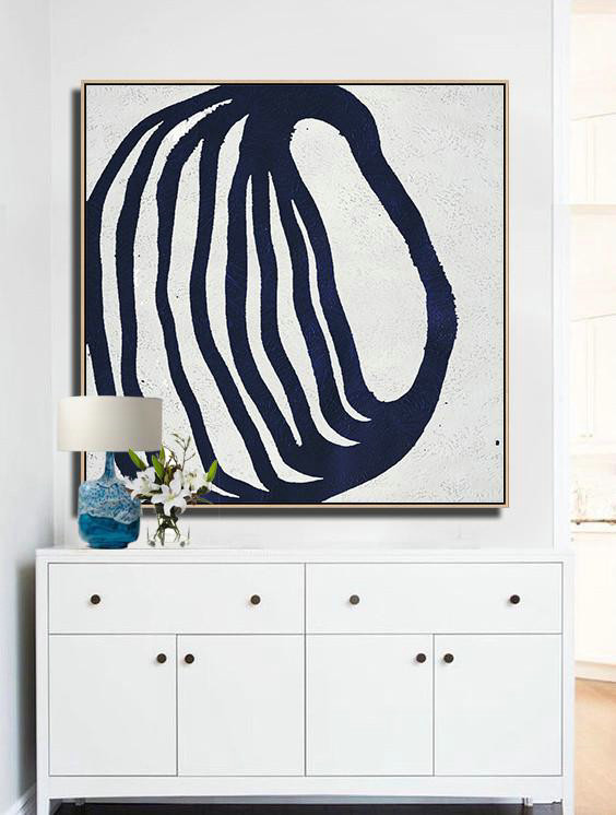 Large Abstract Art Handmade Painting,Hand Painted Navy Minimalist Painting On Canvas,Acrylic Painting On Canvas
