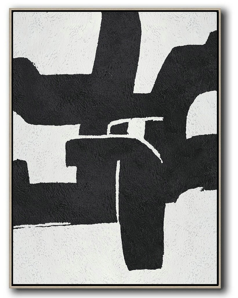 Family Wall Decor,Black And White Minimal Painting On Canvas – Large Abstract Art,100% free-hand painted onto a canvas by a master artist. Work directly with the artist to customize your painting or just upload a photo and let them handle it.