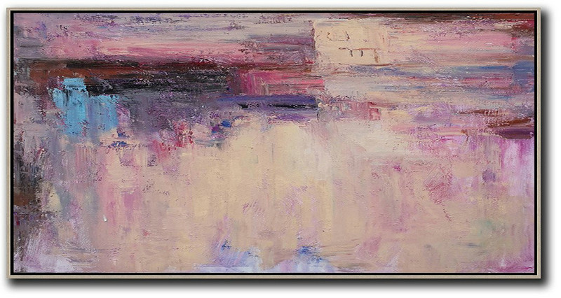 Large Abstract Art,Horizontal Palette Knife Contemporary Art,Extra Large Paintings,Light Yellow,Purple,Pink,Brown.etc