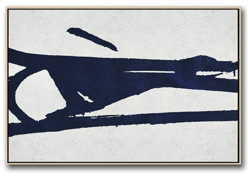 Large Abstract Painting Canvas Art,Horizontal Navy Painting Abstract Minimalist Art On Canvas,Original Abstract Art Paintings