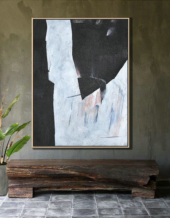 Large Abstract Painting,Hand-Painted Black And White Minimal Painting On Canvas – Original Abstract Painting Canvas Art