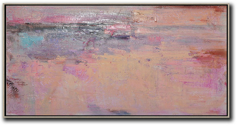 Large Abstract Painting,Horizontal Palette Knife Contemporary Art,Large Paintings For Living Room,Light Yellow,Purple,Pink,Brown.etc