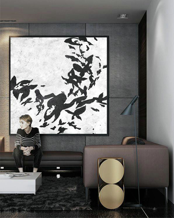 Large Abstract Painting,Oversized Minimal Black And White Painting – Abstract Painting For Home