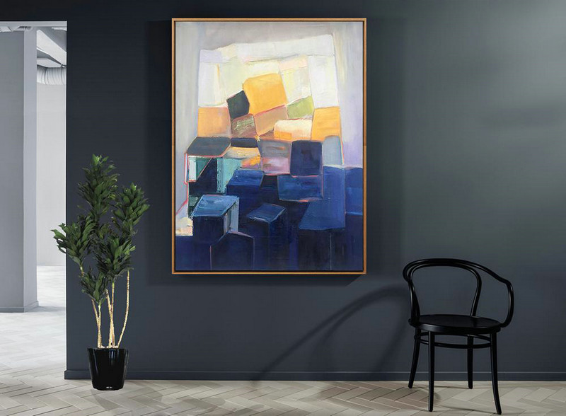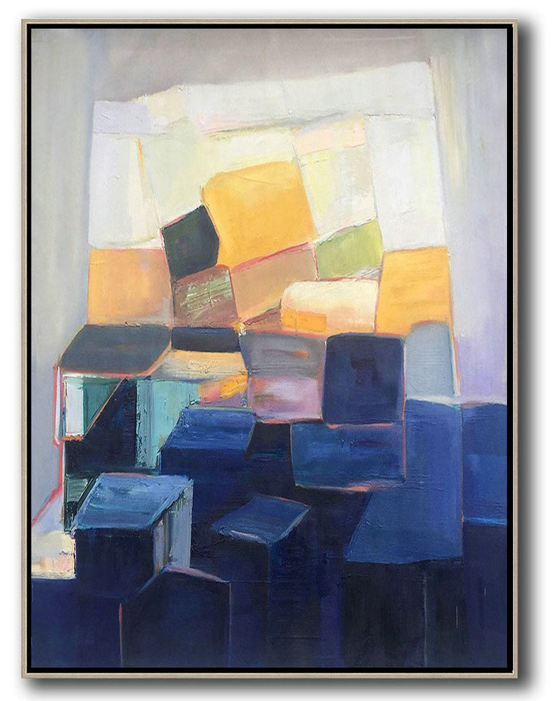 1 review for Original Art Acrylic Painting,Vertical Palette Knife Contemporary Art,Large Colorful Wall Art,Grey,Yellow,Dark Blue.etc