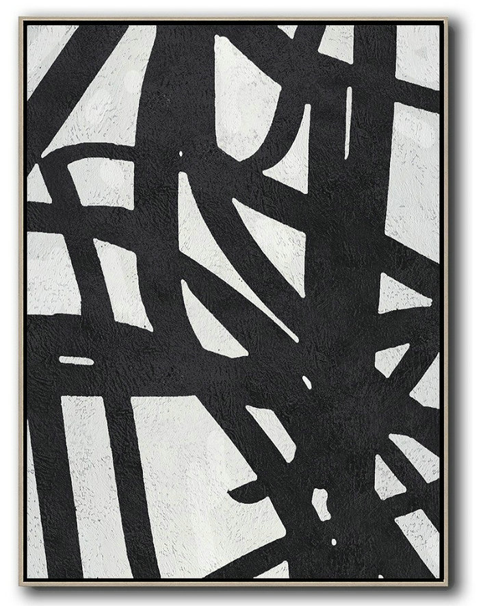 Original Artwork Extra Large Abstract Painting,Black And White Minimalist Painting On Canvas – Hand Painted Acrylic Painting