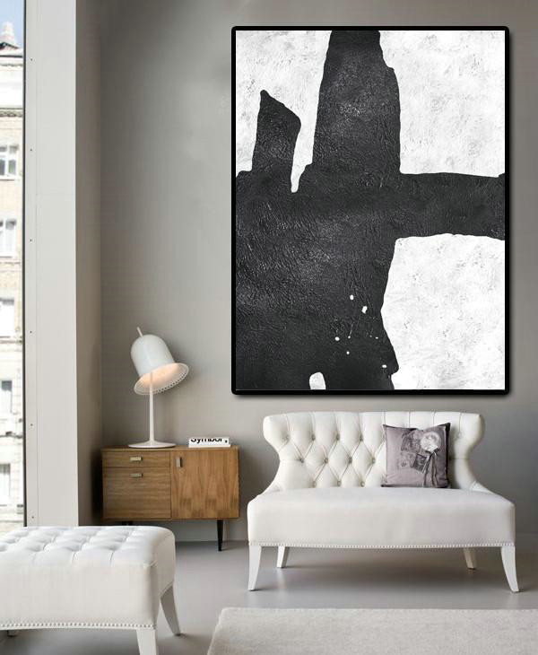 Original Extra Large Wall Art,Black And White Minimal Painting On Canvas – Hand Painted Original Art